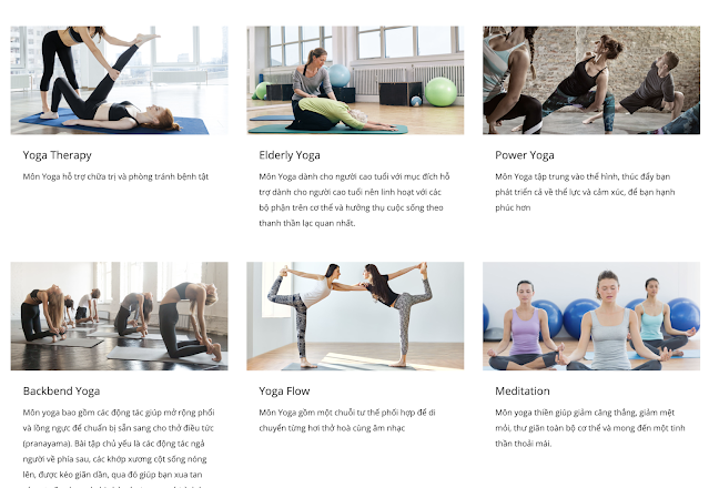 + Power Yoga: Môn Yoga tập trung vào thể hình, thúc đẩy bạn phát triển cả về thể lực và cảm xúc, để bạn hạnh phúc hơn.